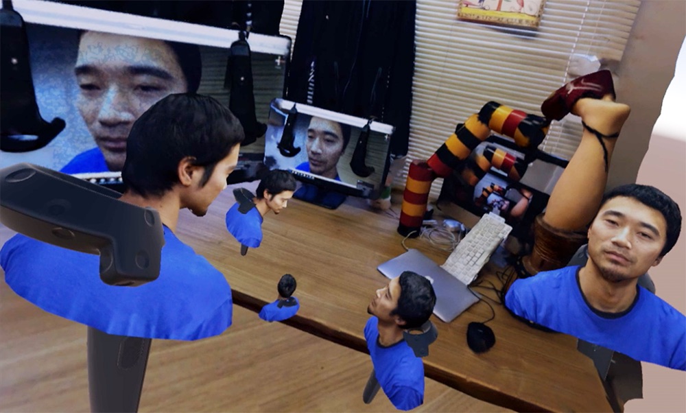Recursive Function Space (RFS) is a virtual reality based interactive contents that prominently explores and activates a meta-cognitive function in our human cognition system. RFS consists of four (RFS 1.0) or six (RFS 2.0) clones of the player (HMD wearer), characterized in a distinctive perspective transition among these clones that gives an out-of-body-like experience of seeing oneself, how one looks at oneself, and how one is looked by oneself. This is done with the HMD technology (VIVE), where pulling a lever of the left/right controller enables the player to take the perspective of the left/right hand of HMD wearer. The player can also take the perspective from the right hand of “left hand clone” or that from the “meta-clone” owning the HMD wearer at its left hand clone. Such a recursive exploration of the multiple perspectives is systematically associated with Homunculus’ infinite regress discussed in the context of “hard problem of consciousness”. Thus, RFS embodies a classically universal question concerning the origin of the subject with an up-to-date HMD technology.