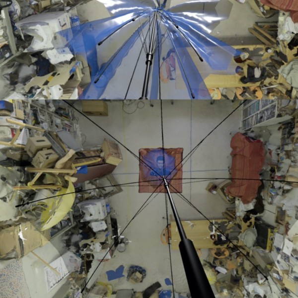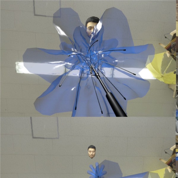 今日から、定期的に「からだは戦場だよ2018」(27・28)の出し物の予告をします。まずは「セルフ・アンブレリング(重力反転計画α)」というHMD装置について。映像の通り、寝ている自分(身体的自己)が傘を開くことで、それを上方から見下ろしている自分(視点的自己)が上に吹き上げられていきます。 pic.twitter.com/bQiP6wiidK